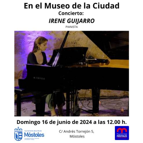 El domingo 16 de junio, a las 12:00 h, se podrá disfrutar de un concierto gratuito de piano, en el Museo de la Ciudad. Irene Guijarro ofrecerá este recital interpretando sonatas de Beethoven y composiciones del nacionalismo musical del siglo XX. Para aquellos que deseen asistir y deleitarse con su música podrán hacerlo con entrada gratuita, previa retirada de invitaciones en el propio centro a partir del martes 11 de junio.