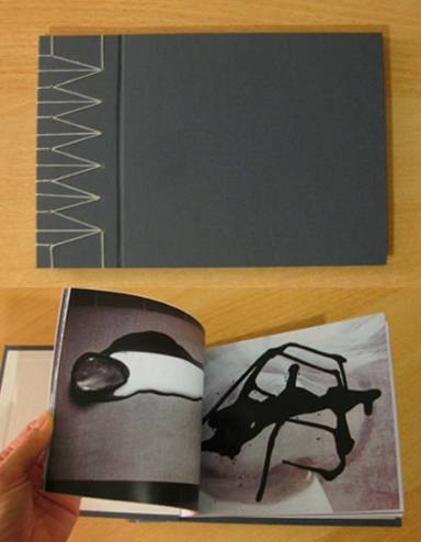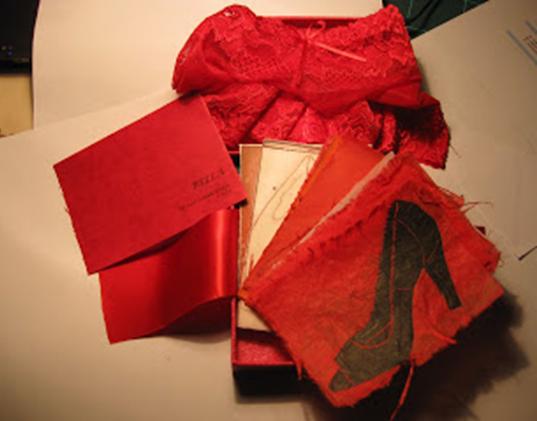 Libro de artista "Caperucita Roja": El cuento de Caperucita trata de la ambivalencia infantil acerca de si vivir de acuerdo con el principio de la realidad o con el principio del placer. Utilizo la moraleja del cuento de Perrault acompañando la silueta del lobo con cuerpo de hombre y una muchacha sentada, repetidamente, de manera secuencial.