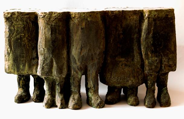 Ellos: Esta pieza viene de ideas que trabajo desde hace tiempo, la memoria y los sueños. El hueco, el vacío. Reflejar figuras con pérdida de detalles incluso omisión de información. Figuras esquemáticas, desnudas, sugerentes, enigmáticas. Reflejan nuestra fuerza o nuestro lastre. Figuras distorsionadas, que cambian, porque los recuerdos y los sueños son así...