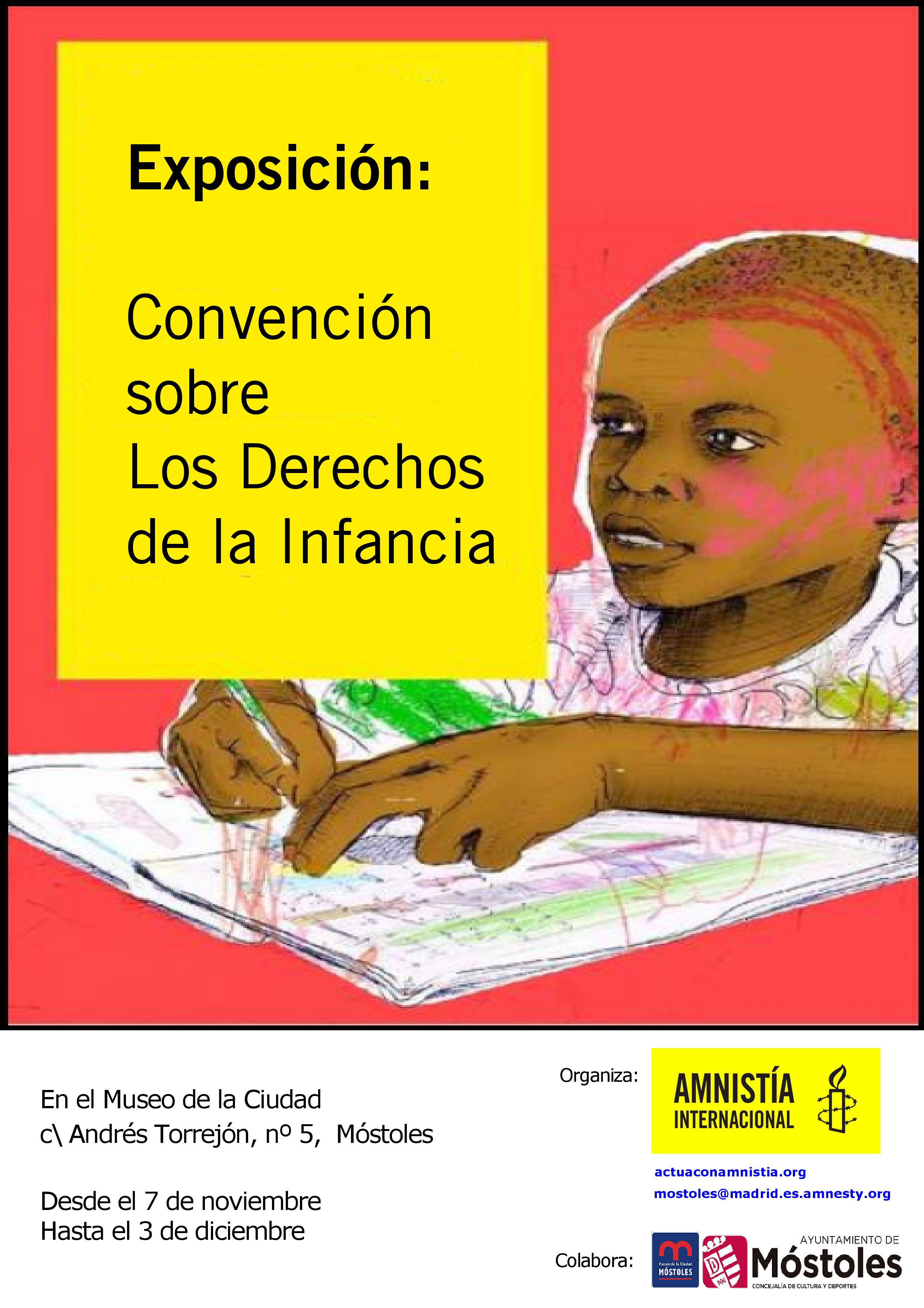 La exposición "Los derechos de la infancia" de Amnistía Internacional se podrá visitar en el Museo de la Ciudad de Móstoles ubicado en la calle Andrés Torrejón, 5, desde el 7 de noviembre al 3 de diciembre.