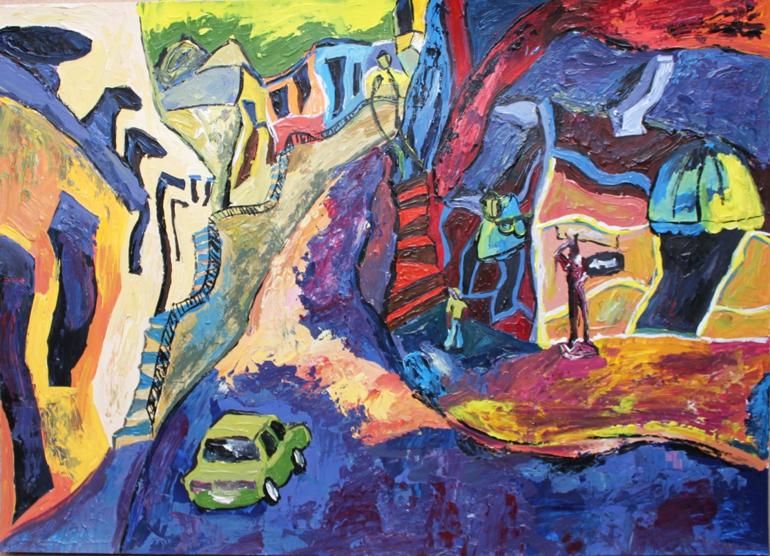 En esta exposición se pueden ver todas las obras que aparecen en el cortometraje El Pintor de Sombras, mas algunas que fueron descartadas, que han sido realizadas por el vallisoletano Javier Bolaños de Hoyos, un artista cuya obra destaca por sus texturas, colores vivos, y por la utilización de una pincelada agresiva, que transfiere a sus obras una gran fuerza y expresividad. Además, en este proyecto ha llevado al extremo su pintura expresionista, saturada, agobiante y con sombras pronunciadas, acercándola a la ilustración, y añadiéndole además formas distorsionadas y líneas sinuosas, produciendo un fuerte contraste con la arquitectura de la zona colonial de Santo Domingo, sus colores pastel y su ambiente de tranquilidad y sosiego.
