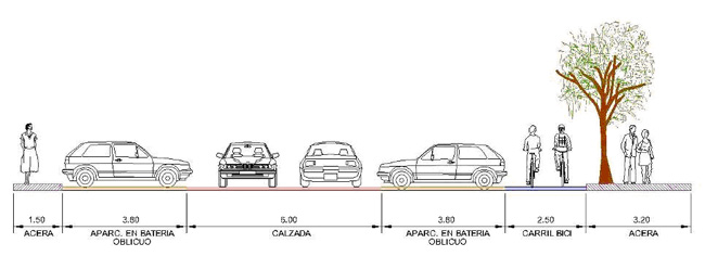 En este tramo se crean un total de 886 metros de vías ciclistas, de los cuales 329 metros son de carril bici, y el resto, 557 metros, son de coexistencia debido a la propuesta de ampliación de dicha zona. Actuación: