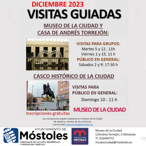 Las inscripciones (gratuitas) para público en general pueden realizarse en el Museo de la Ciudad desde el martes al viernes de la semana en curso, de 10 a 14 horas, o en el email museociudad@mostoles.es en el mismo horario. Las visitas para grupos se podrán solicitar desde el martes de la semana anterior.