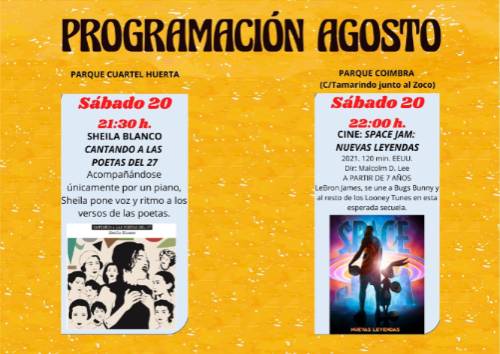 Parque Coimbra (C/ Tamarindo junto al Zoco), a las 22.00 horas