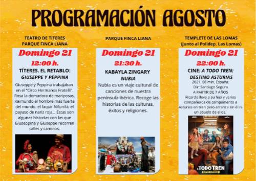 La programación incluye música, danza, humor, cine, magia, títeres… Todas las actividades programadas son gratuitas.