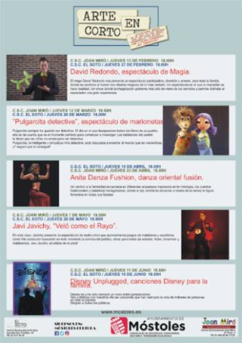El programa, que se desarrollará hasta junio, arrancará el próximo 13 de febrero, a las 18 horas, en el Centro Sociocultural Joan Miró, y el 27, a la misma hora, en el Centro Sociocultural El Soto, con un espectáculo de magia a cargo del mago David Redondo que nos presenta un espectáculo participativo, divertido y ameno, para toda la familia, donde se combina el humor con efectos mágicos de lo más variado. Dirigido a todos los públicos.