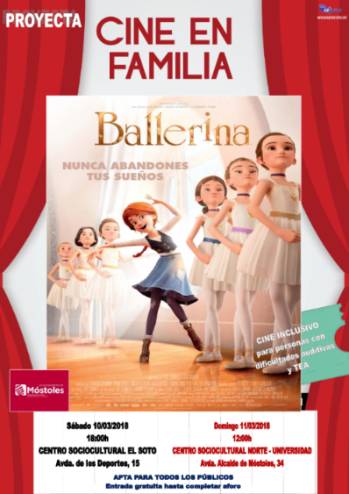 Imagen en alta resolución. Este enlace se abrirá mediante lightbox, puede haber un cambio de contextoLa Concejalía de Cultura, Bienestar Social y Vivienda exhibirá el próximo fin de semana la película "Ballerina", en el marco del programa "Proyecta", que amenizará los fines de semana con cine dirigido a todos los públicos y con entrada gratuita.