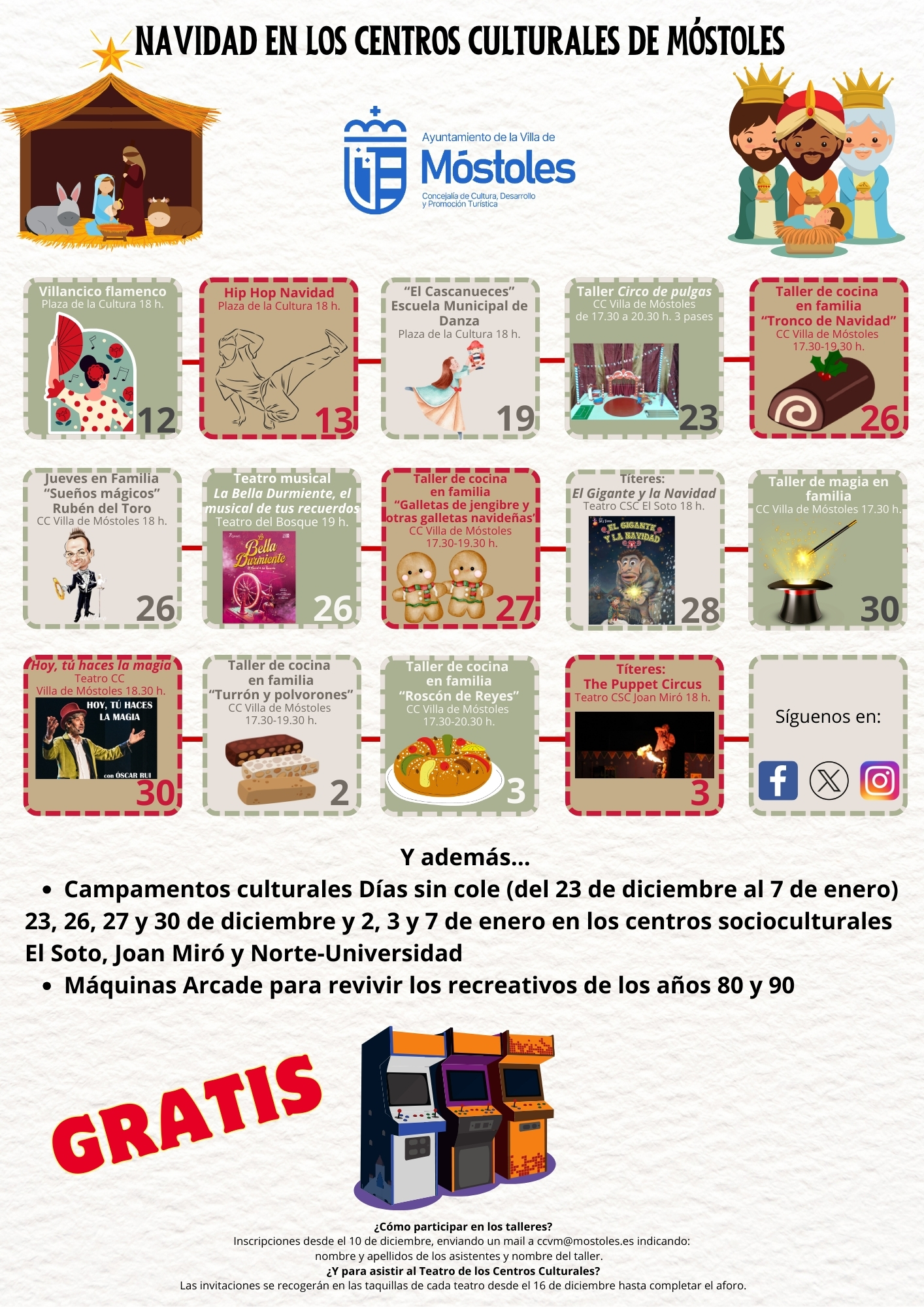 - Talleres de cocina navideña, CuenTalleres en la Biblioteca Central, magia y títeres, entre las actividades culturales organizadas por el Ayuntamiento de Móstoles para las familias durante estas fechas navideñas.
