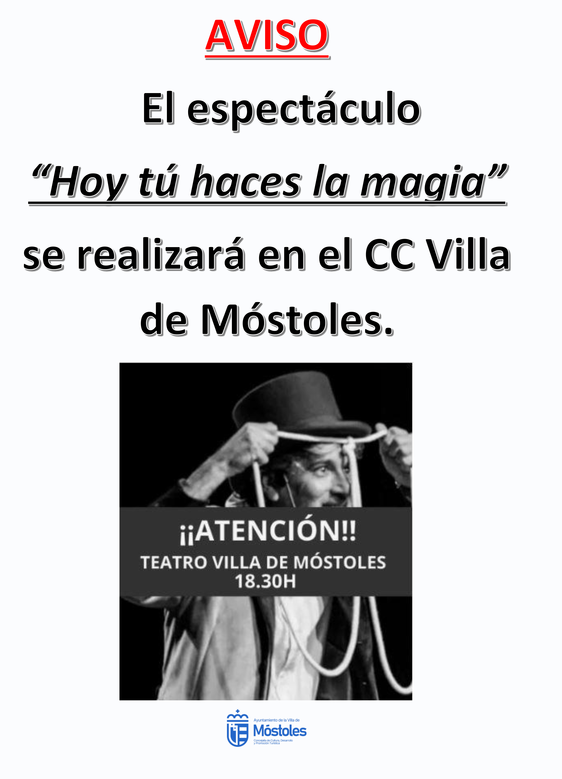 El lunes 30 de diciembre la magia cobra protagonismo primero con un taller de magia en familia, en el Centro Cultural Villa de Móstoles a partir de las 17:30 h. Y, a las 18:30 h, el mago Óscar Rui, ofrecerá su espectáculo "Hoy, tú haces la magia", en el Teatro Villa de Móstoles, con el que familiares y amigos aprenderán a realizar trucos sorprendentes.