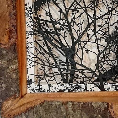 - La muestra "Recovery Urban Woods" plasma grabados no convencionales, en tres dimensiones, que recrean ambientes de bosques, luces y sombras, en formato de dioramas abiertos como ventanas hacia otros lugares, tiempos y espacios.