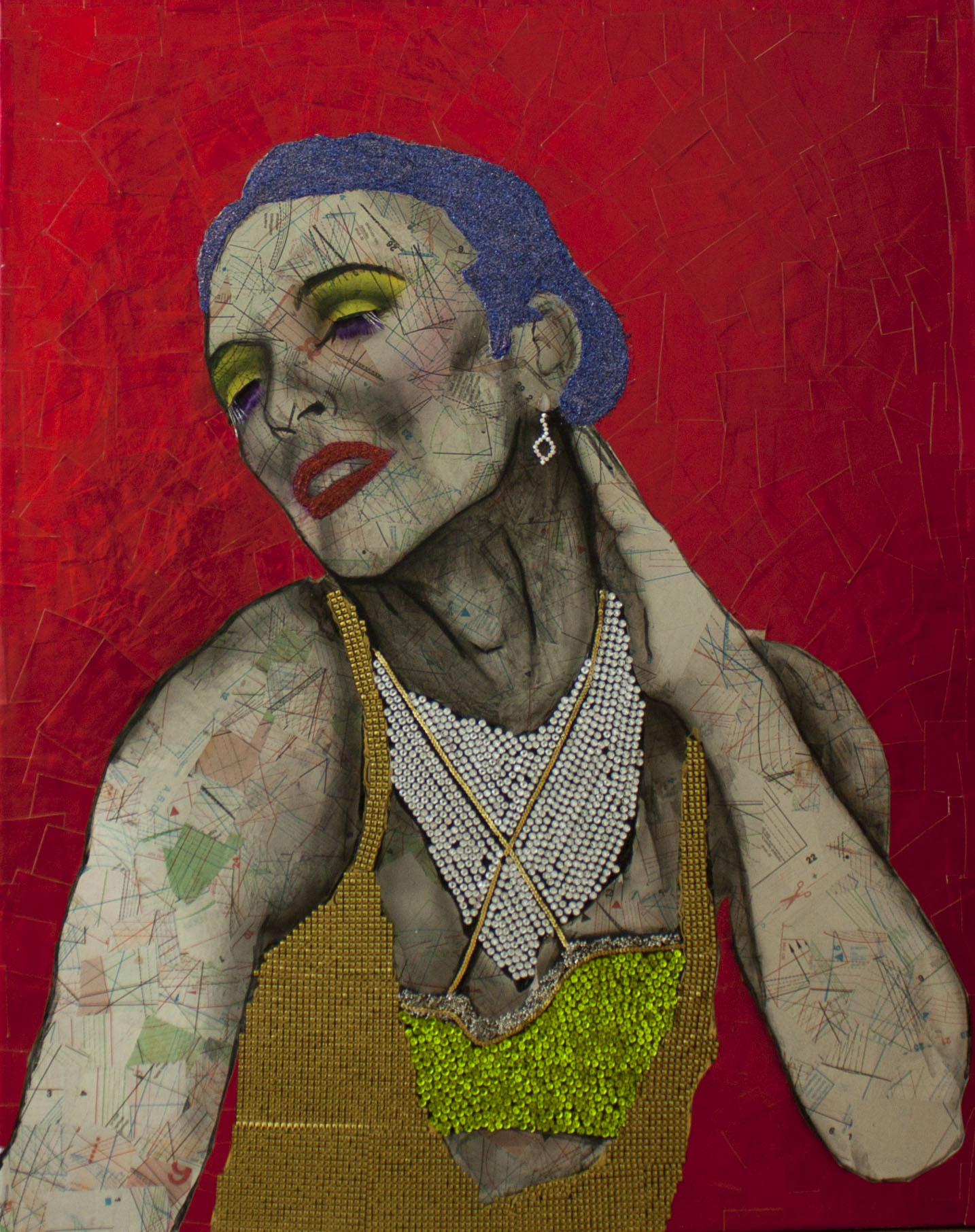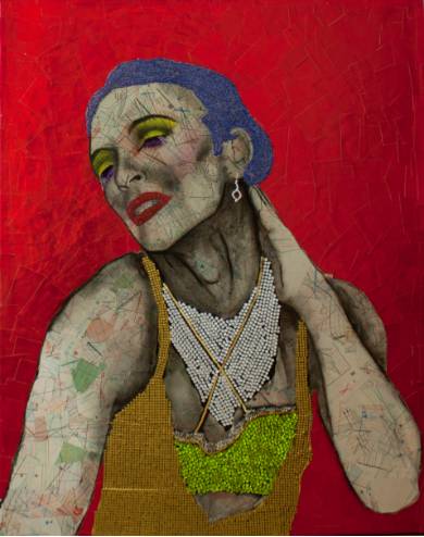 Disfruta del color que vibra velozmente en las pupilas expectantes. Gran parte de su trabajo está realizado con objetos de reciclaje y purpurina.