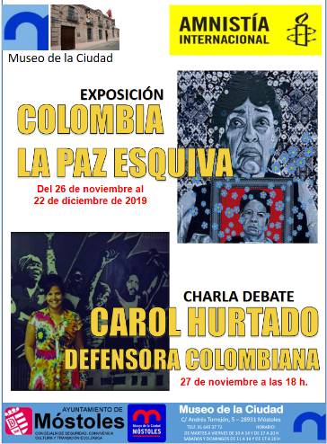 - Coincidiendo con la exposición, el 27 de noviembre, Carol Hurtado, defensora de Derechos Humanos en Colombia, participará en una charla coloquio a las 18:00 horas. Al día siguiente a las 11:00 horas compartirá un debate con estudiantes de Móstoles.