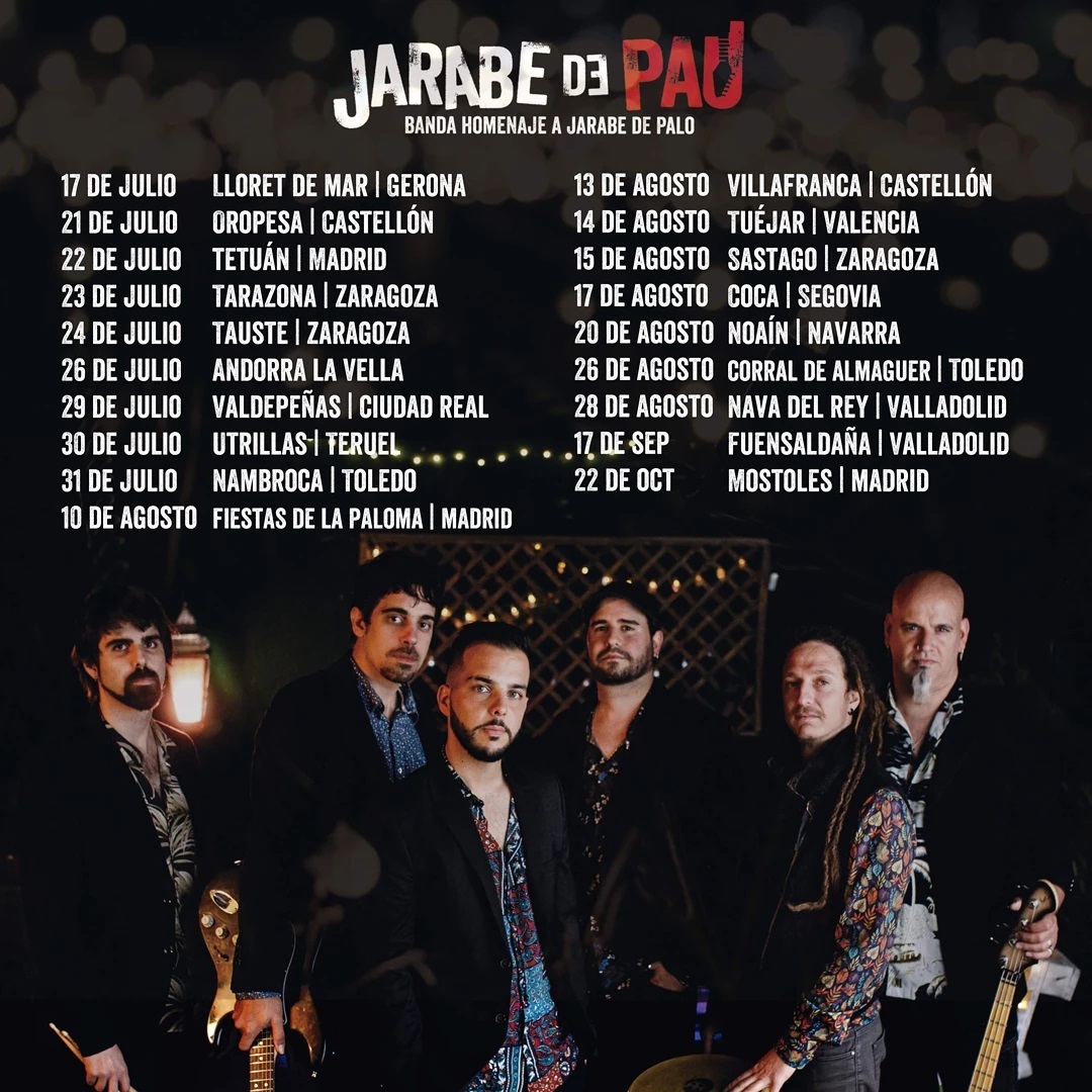 El sábado 23 de octubre a las 19:00 h en el Teatro del Bosque se celebrará un concierto homenaje al grupo "Jarabe de Palo", que lideraba el cantante, guitarrista y compositor Pau Donés. La banda "Jarabe de Pau" ofrecerá un recital que recordará las mejores canciones de Pau Donés, desde el éxito de sus principios con La Flaca hasta su último éxito con Eso que tú me das pasando por temas tan reconocibles como Agua, Bonito, El lado oscuro y Depende, entre otras. "Jarabe de Pau" está formado por Edu Díaz (guitarra rítmica y voz principal), Marcos Justo (bajo y coros), Lluis Martínez (percusión y coros), Carlos Tello (batería), Pablo Hernández (guitarra solista y coros) y Dani Balsán (teclados y coros).