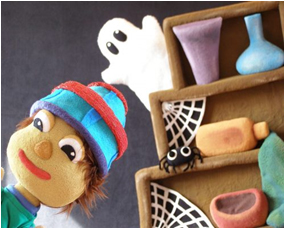 Obra a cargo de Marimba Marionetas en la que Garbancito debe encontrar a los fantasmas de colores, pero para conseguirlo necesita entrar en el Mundo de los Cuentos. Allí se encontrará con Caperucita Roja, con el Lobo y con un pequeño Cerdito.