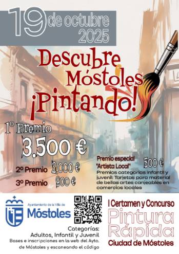 El domingo 19, llega a Móstoles el I Certamen de Pintura Rápida "Descubre Móstoles ¡Pintando!" y Concurso Infantil y Juvenil "Ciudad de Móstoles 2025", que otorgará premios en metálico para los tres primeros ganadores de 3.500 €, 2.000 € y 900 €, un premio especial al "Artista Local" de 500 € y premios en categorías infantil y juvenil con tarjetas para material de Bellas Artes canjeables en comercios locales. Las inscripciones están abiertas hasta el miércoles 15 de octubre.
