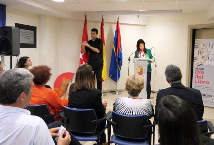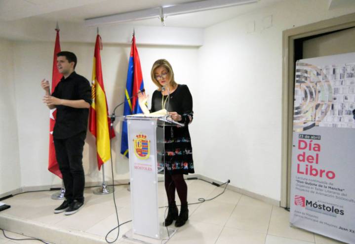 Con motivo de la celebración del Día del Libro, este lunes día 23 de abril, la alcaldesa de Móstoles, Noelia Posse, acompañada por miembros de la Corporación Municipal, ha participado en la lectura continuada de nuestra obra más universal, El Quijote.