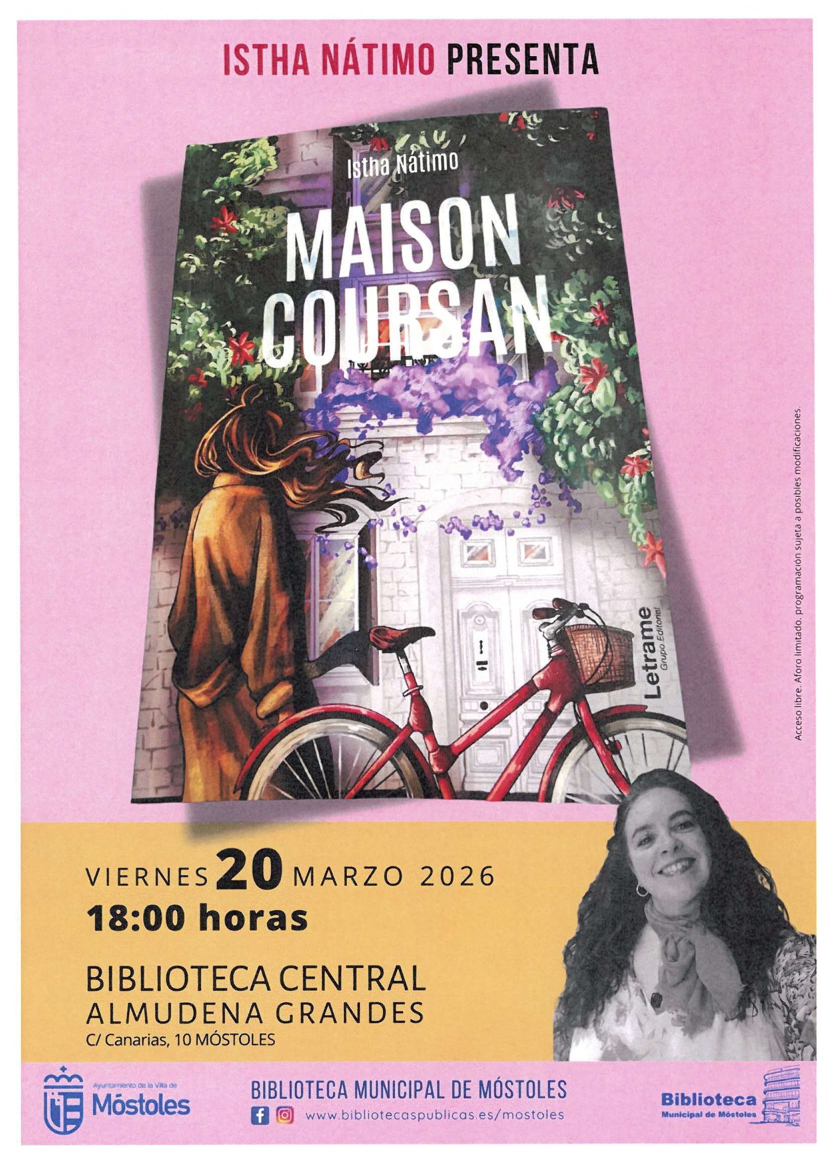 Istha Nátimo, seudónimo de Cristina Castillo, madrileña de nacimiento y psicóloga de profesión, presenta el viernes 20, a las 18:00 h, en la Biblioteca Central Almudena Grandes su libro "Maison Coursan".