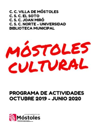 Móstoles Cultural 2019_2020Imagen en alta resolución. Este enlace se abrirá mediante lightbox, puede haber un cambio de contextoMóstoles Cultural 2019_2020La Concejalía de Cultura y Políticas Mediambientales ha presentado la nueva programación de Móstoles Cultural, que se desarrollará desde el próximo mes de octubre a junio de 2020, con una oferta de más de 300 talleres y cursos, impartidos por 41 asociaciones de la Ciudad.