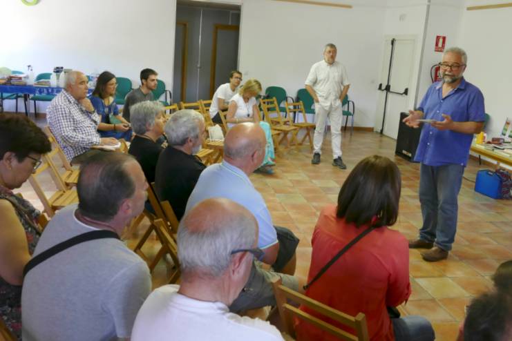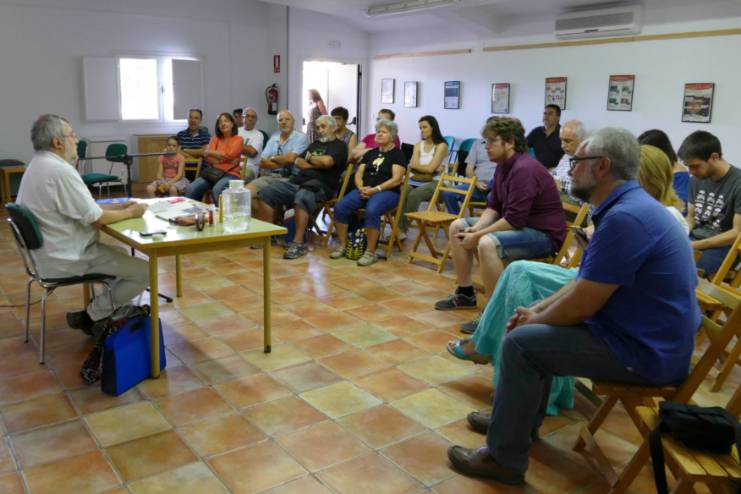 Imagen en alta resolución. Este enlace se abrirá mediante lightbox, puede haber un cambio de contextoEl concejal de Medio Ambiente, Parques y Jardines y Limpieza Viaria, Miguel Ángel Ortega, la concejala de Educación, Isabel Cruceta y la concejala de Régimen Interior, Susana García, asistieron este domingo 4 de junio a la lectura de poemas ecologistas del poeta y filósofo Jorge Riechmann, ofrecido en el Centro de Ecología Social de la Finca Liana.