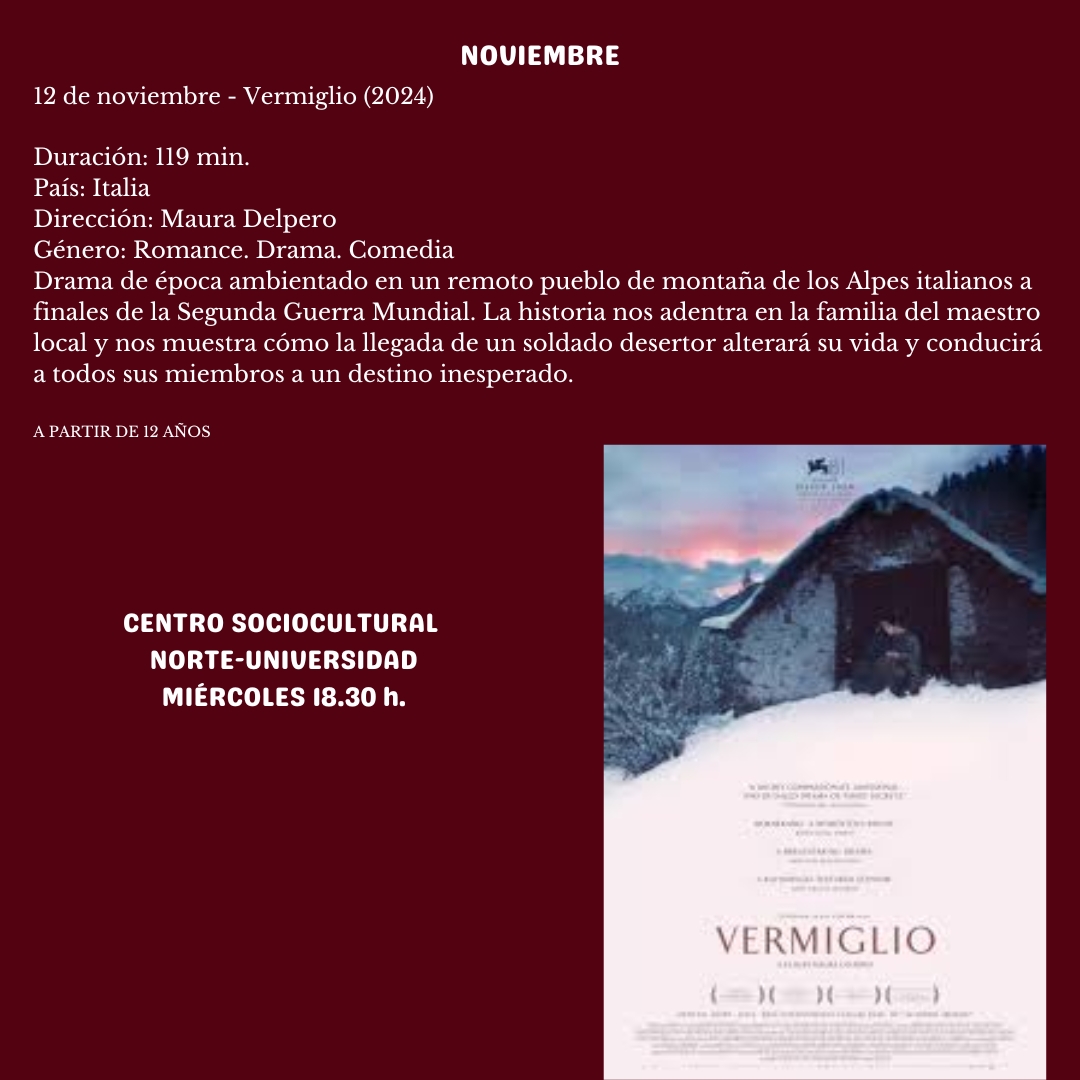 También el miércoles se proyecta la película italiana "Vermiglio" dentro del ciclo de cine Filmoteca. Será a las 18:30 h en el Centro Sociocultural Norte-Universidad.