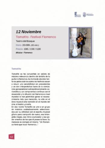 - El miércoles 12 el guitarrista Tomatito inaugurará el Festival Flamenco, que contará con actuaciones de grandes artistas como Israel Fernández, José Maya, Josemi Carmona y la compañía Antonio Gades.