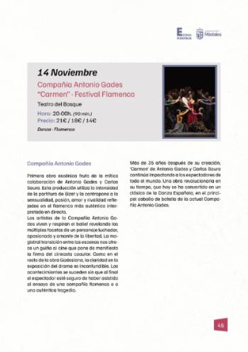 También el viernes 14, a las 20:00 h, la Compañía Antonio Gades subirá al escenario del Teatro del Bosque para presentar su aclamada versión de Carmen, una pieza esencial del repertorio flamenco que fusiona la fuerza de la danza con la potencia dramática del mito universal.