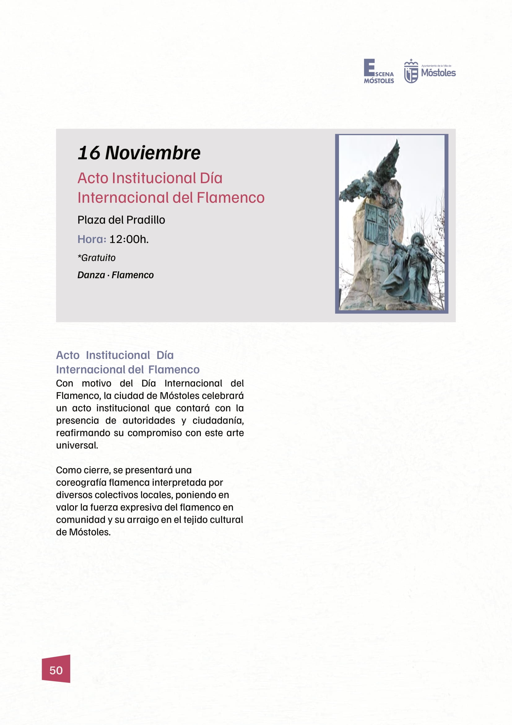 A la misma hora, se celebrará en la Plaza del Pradillo un acto institucional con motivo del Día Internacional del Flamenco, que contará con la actuación del bailaor José Maya, figura esencial del flamenco contemporáneo, capaz de unir la pureza de la tradición con la fuerza innovadora de la vanguardia.