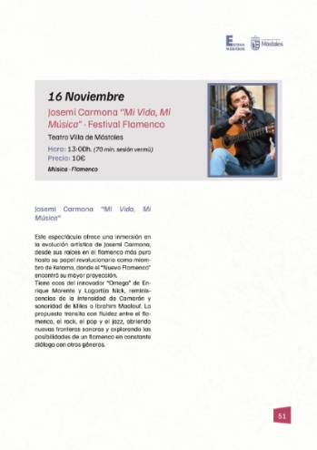Ese mismo día, a las 13:00 h, en el Teatro Villa de Móstoles, el guitarrista Josemi Carmona ofrecerá el concierto "Mi vida, mi música", un recorrido íntimo por su trayectoria personal y su herencia familiar.