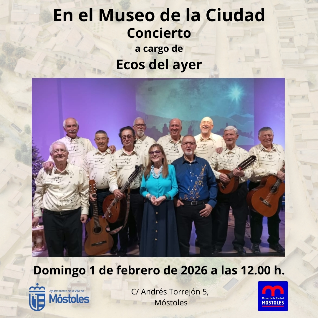 El domingo 1 de febrero el Museo de la Ciudad alberga el concierto que ofrecerá a partir de las 12:00 h el grupo Ecos del ayer. La entrada es gratuita, previa retirada de invitaciones en el propio centro a partir del martes 27 de enero.