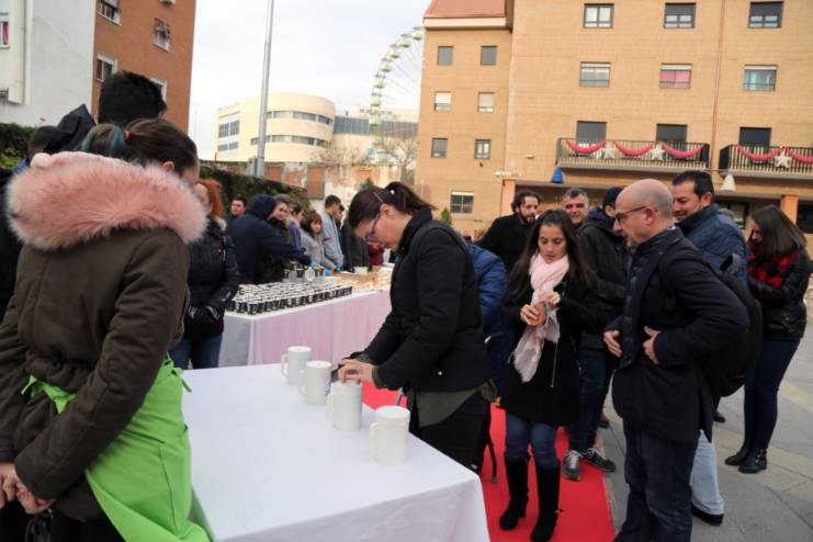 Imagen en alta resolución. Este enlace se abrirá mediante lightbox, puede haber un cambio de contextoLa alcaldesa de Móstoles, Noelia Posse, junto a varias concejalas y concejales de la Junta de Gobierno Local ha asistido a la degustación del roscón solidario que el Ayuntamiento ha organizado esta mañana en la Plaza de España, y que ha contado con la asistencia de numerosos vecinos y vecinas que han querido participar en la iniciativa. El roscón ha sido elaborado por los alumnos y alumnas de Grado Medio del Ciclo de Pastelería, Panadería y Confitería de la Escuela de Hostelería y Turismo Simone Ortega. Los alumnos de FP Básica se han encargado del servicio durante el acto.