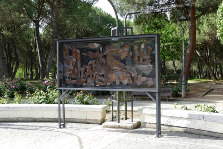 Imagen en alta resolución. Este enlace se abrirá mediante lightbox, puede haber un cambio de contextoEsta mañana se ha inaugurado, en la rosaleda del parque Finca Liana de Móstoles, el `Paseo de la Memoria´. Compuesto por un monumento con la obra `Guernica´, del artista local Francisco Cobos, y una placa en homenaje a cada una de las personas represaliadas durante la posguerra, el Paseo está dedicado a homenajear a las 23 víctimas civiles de la represión franquista durante la posguerra, aunque también se rinde tributo a dos mostoleños que perdieron su vida en el campo de concentración nazi de Mathausen-Güsen, en Austria.