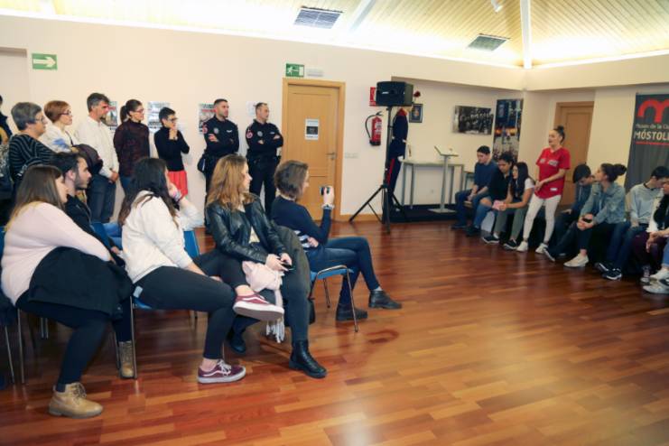 En la presentación participaron tanto las profesoras coordinadoras como los autores y autoras de los carteles, quienes explicaron qué les ha motivado a participar en esta actividad. Asimismo, el grupo de teatro Clamor participó con una performance y una escena, relacionadas con el problema de la violencia y acoso sufrido por las mujeres.