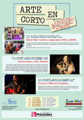 El programa arrancará el próximo miércoles 4 de octubre, a las 18 horas, en el Centro Sociocultural El Soto, y el 18, a la misma hora, en el Centro Sociocultural Joan Miró, con la puesta en escena de " Educar feliz. Cuentos y juegos para niñ@s y adult@s", de Raquel González Rodríguez, vecina de la localidad.