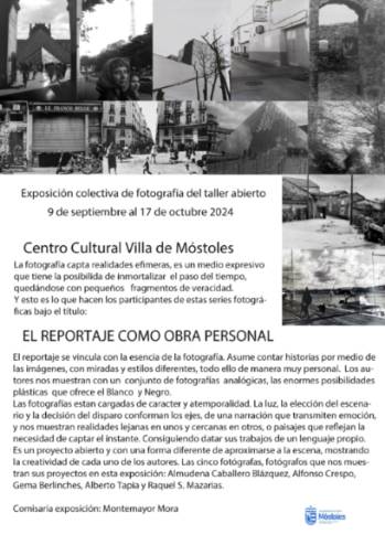 destacada Cartel divulgativo REPORTAJE 2024 copiadestacada Cartel divulgativo REPORTAJE 2024 copia"El reportaje como obra personal" es el tema central de la exposición colectiva de fotografía, que se podrá visitar del 9 de septiembre al 17 de octubre en el Centro Cultural Villa de Móstoles.