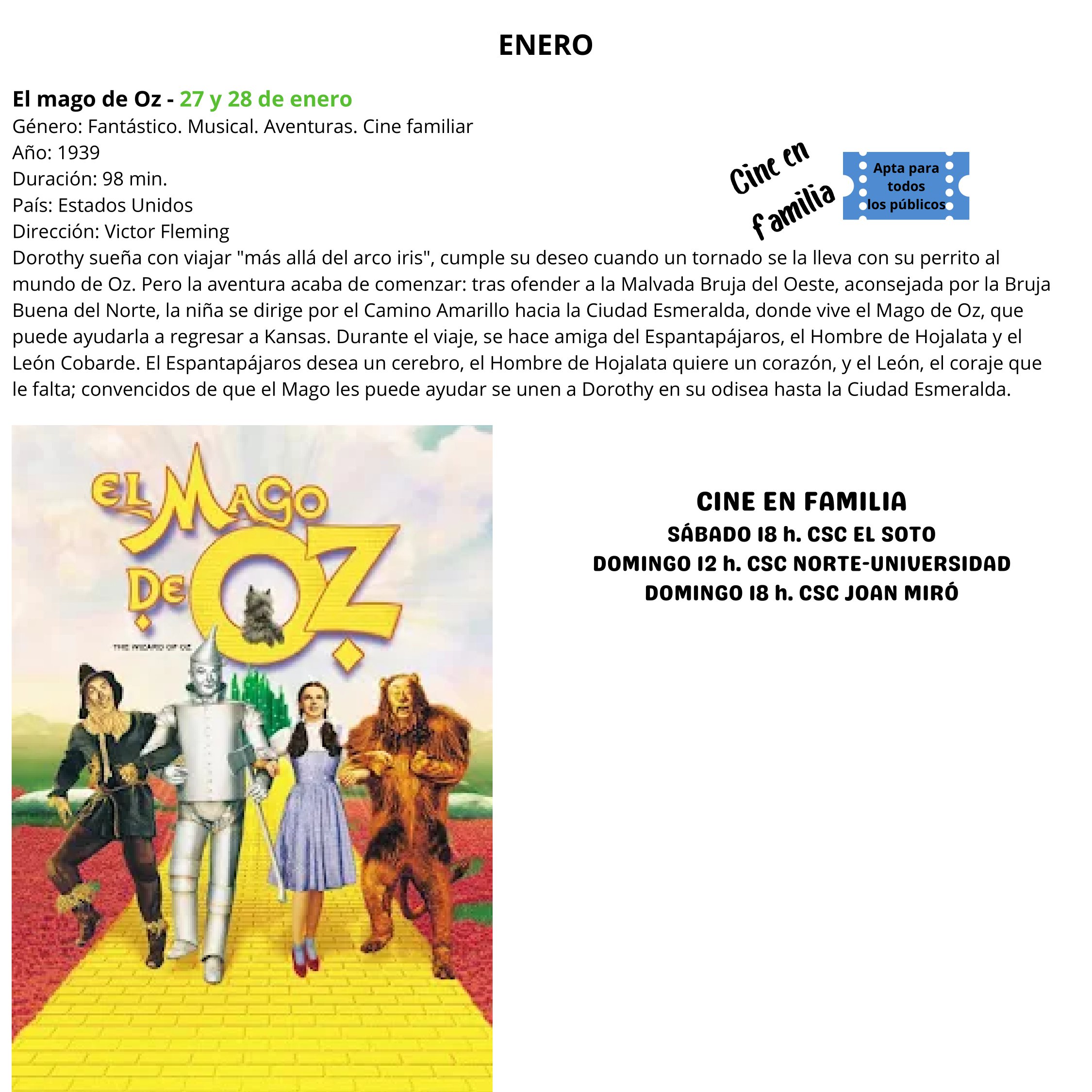 CINE EN FAMILIA. Programa organizado para ver en familia esas películas de siempre de nuevo con los hijos, pero esta vez en pantalla grande. En el Centro Sociocultural El Soto, a las 18 horas.