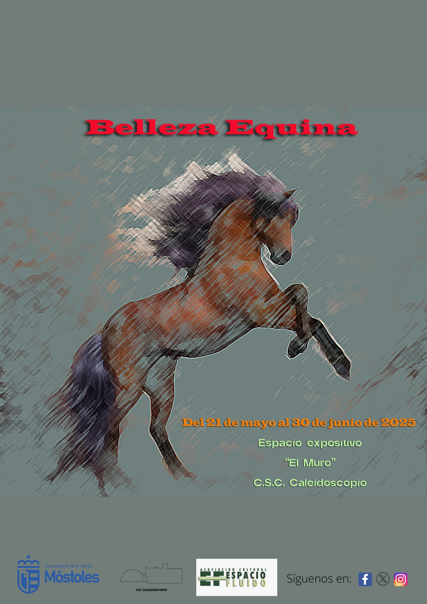 El Centro Sociocultural Caleidoscopio acoge, del 21 de mayo al 30 de junio en el espacio expositivo El Muro, la exposición "Belleza equina". Se trata de un proyecto de pintura realizado por los alumnos del taller impartido por la Asociación Cultural Espacio Fluido en el mismo centro.