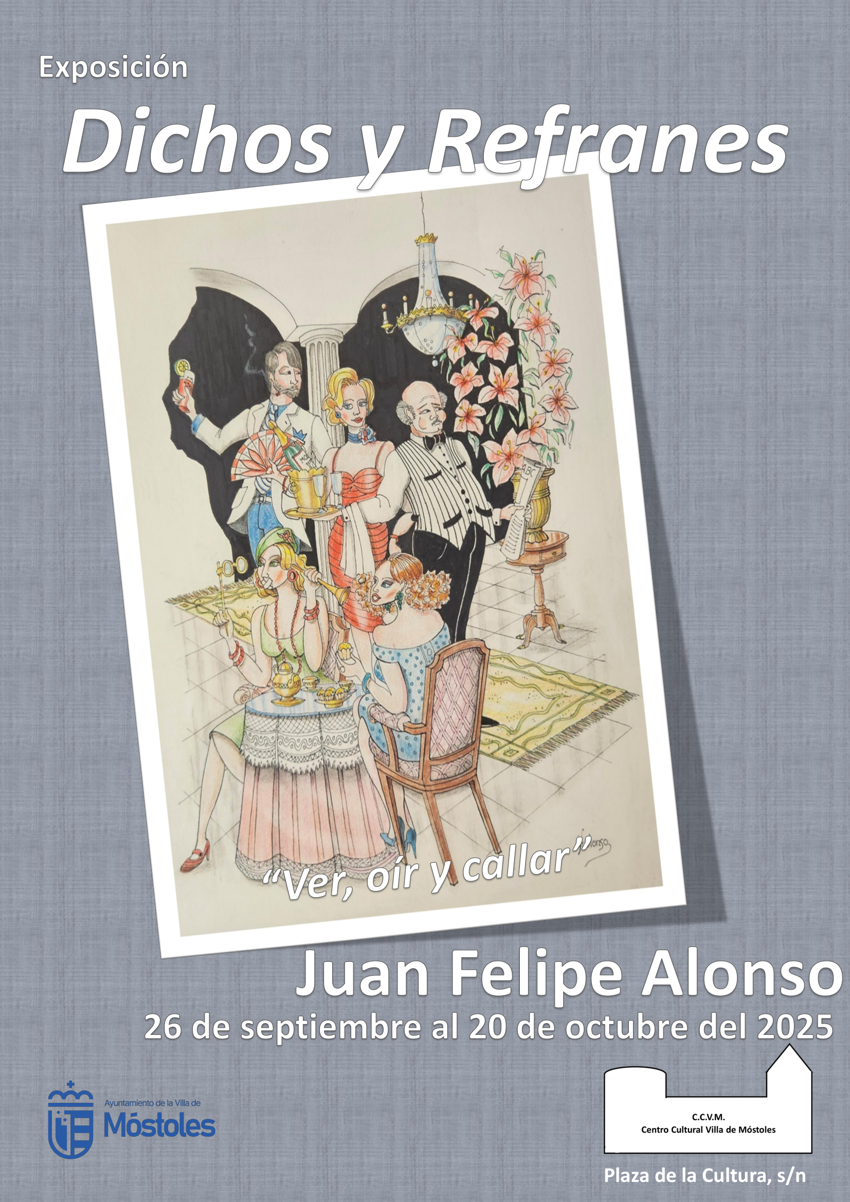 Móstoles va a acoger una original exposición de "Dichos y refranes", una entrañable propuesta del artista Juan Felipe Alonso Fernández, que se podrá ver en Sala de las Columnas del Centro Cultural Villa de Móstoles, del 26 de septiembre al 20 de octubre, y que invita a descubrir la riqueza del lenguaje popular a través de 60 dibujos llenos de humor, ternura y agudeza visual.