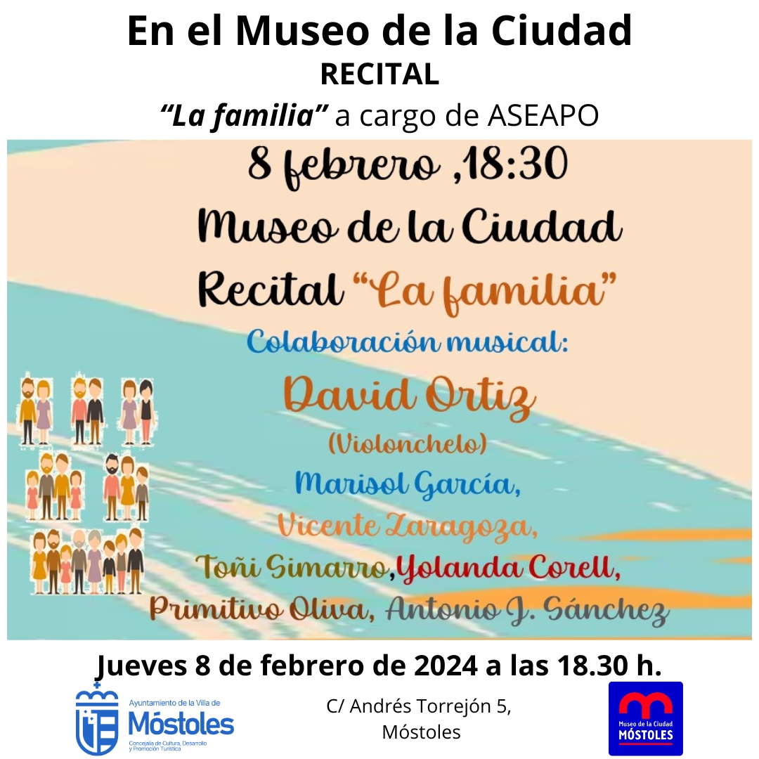 El Museo de la Ciudad de Móstoles acogerá el día 8 de febrero, a las 18.30 horas, el recital de poesía "La familia", organizado por ASEAPO.