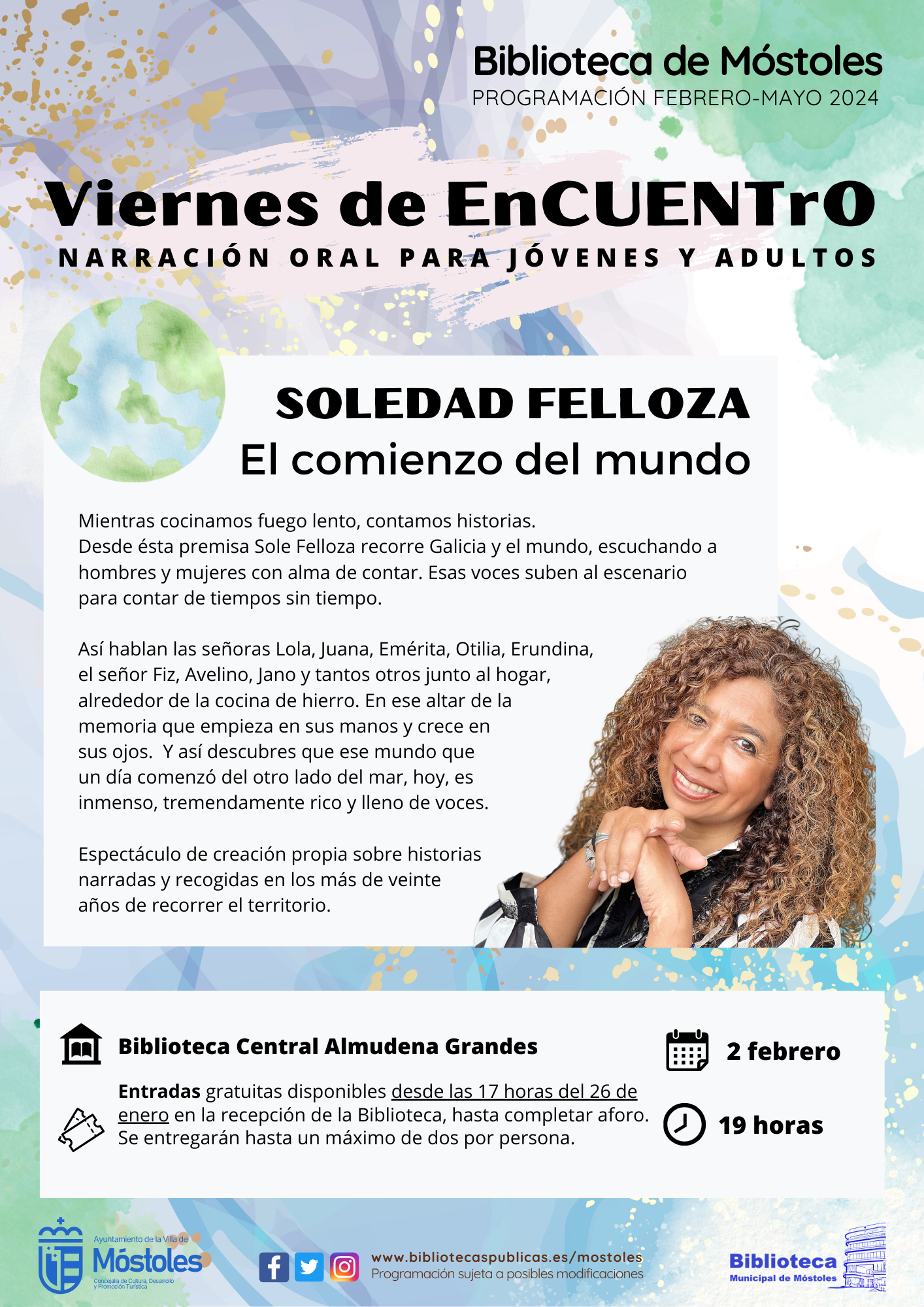 "EL COMIENZO DEL MUNDO", de Soledad Felloza. NARRACIÓN ORAL PARA ADULTOS, dentro de la programación de Viernes de EnCUENTrO. A las 19 horas, en la Biblioteca Central.
