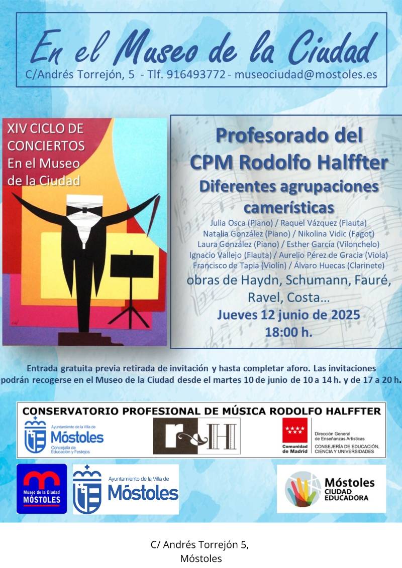 "Concierto de diferentes agrupaciones camerísticas" del profesorado del Conservatorio Profesional de Música Rodolfo Halffter, dentro del XIV Ciclo de Conciertos en el Museo de la Ciudad a las 18:00 horas. Entrada gratuita previa retirada de invitaciones en el propio centro a partir del martes 10 de junio.