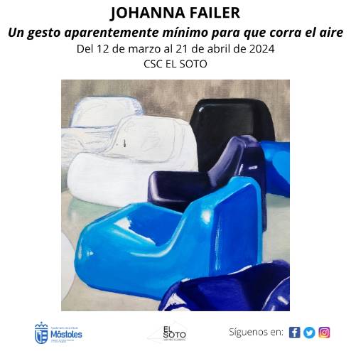La Concejalia de Cultura, Desarrollo y Promoción Turística, a través del Centro Sociocultural El Soto, organizará, del 12 de marzo al 21 de abril, la exposición "Un gesto aparentemente mínimo para que corra el aire", de la artista alemana Johanna Failer.