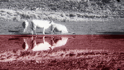 Esta vez, haciendo uso de película química infrarroja, explora una parte de la percepción que nos pasa inadvertida, captando lo invisible y poniendo de manifiesto la memoria de la vida que aconteció.