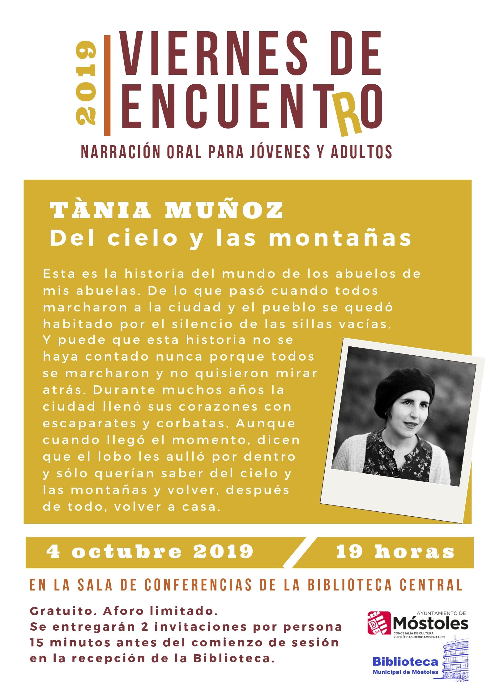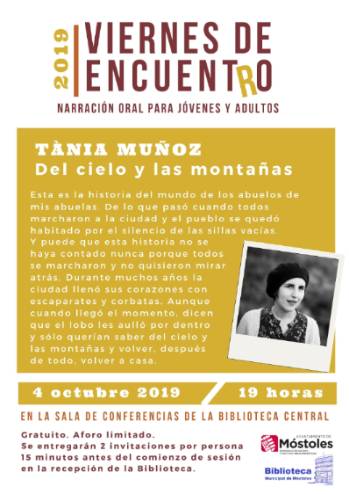 Viernes de Encuentro. Narración oral para adultos: "Del cielo y las montañas" a cargo Tania Muñoz. A las 19 horas, en la Biblioteca Central.