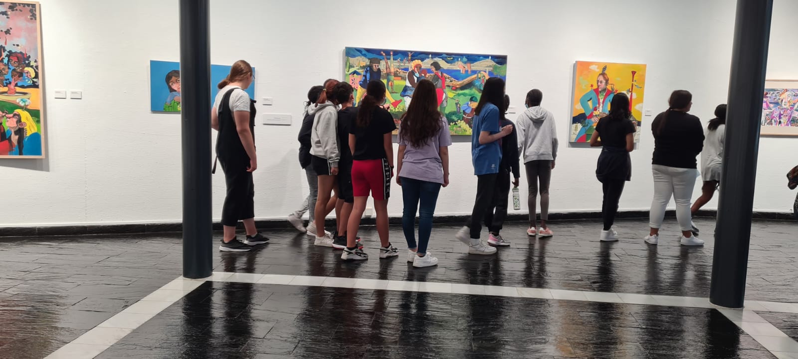 Alumnos del IES Clara Campoamor hacen una visita-taller a la exposición de pintura “Desde el columpio”, de María Balibrea Melero