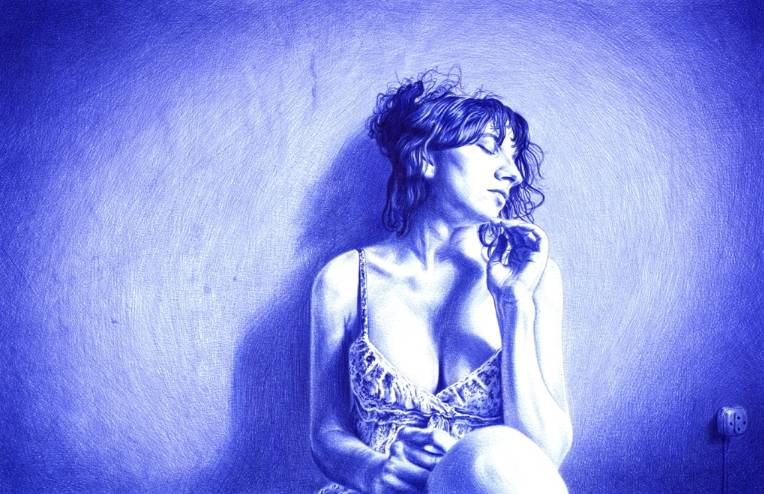 "Al tiempo que trabajo en estos dos estudios, también intento implementar la técnica de representación. Cuando navego por los caminos de la figuración me encanta dibujar con bolígrafo. Todavía sigo estudiando cómo definir perfectamente las diferentes gradaciones y texturas que intento representar", comenta Ignacio Navarro.
