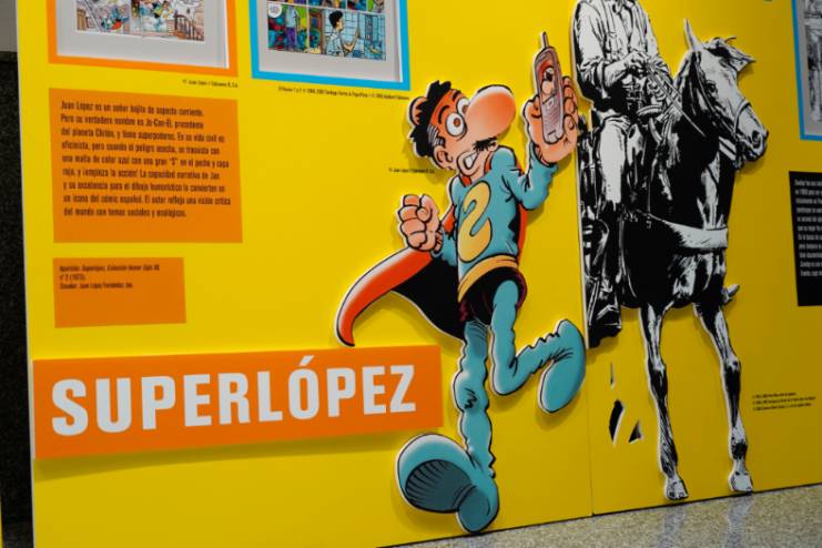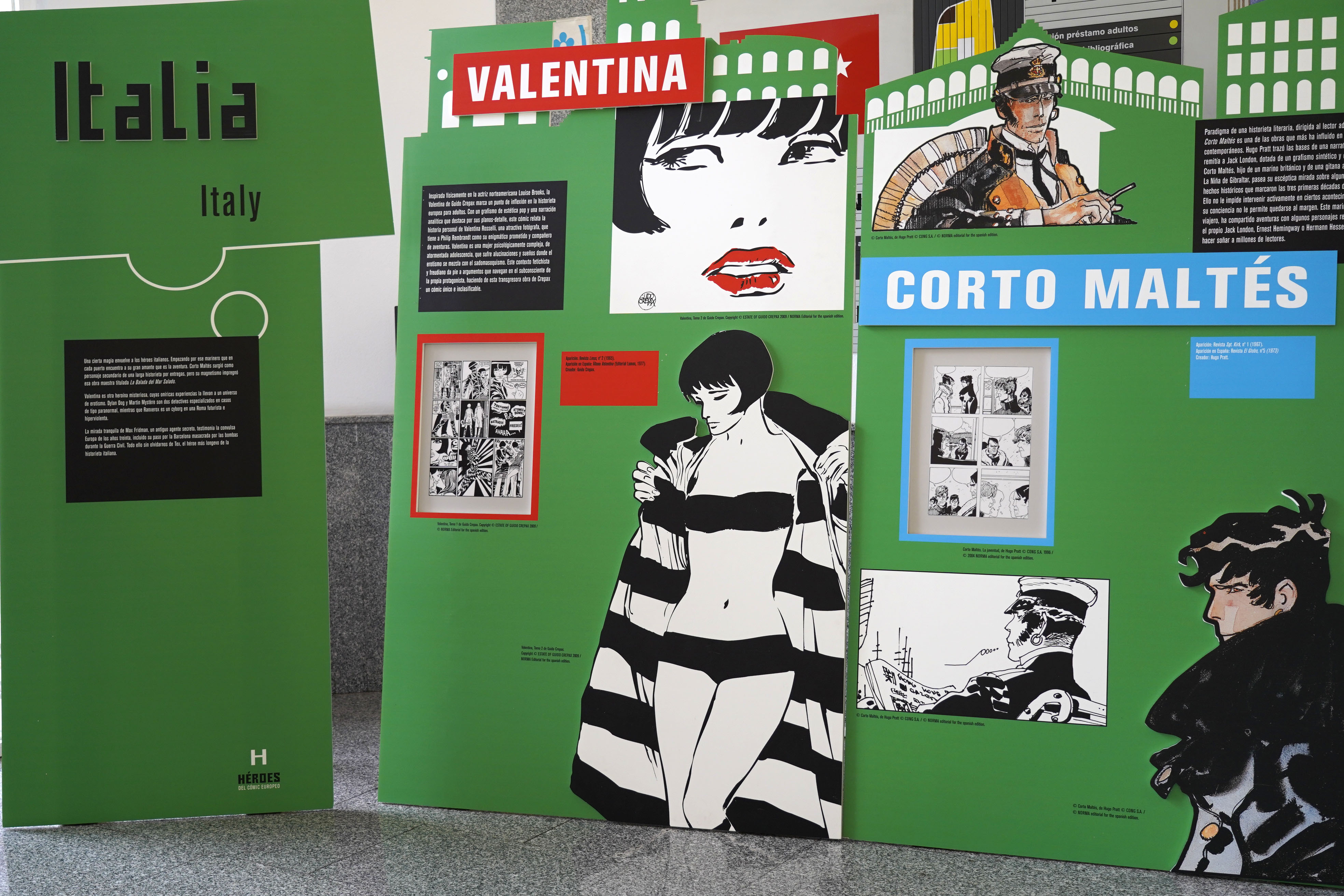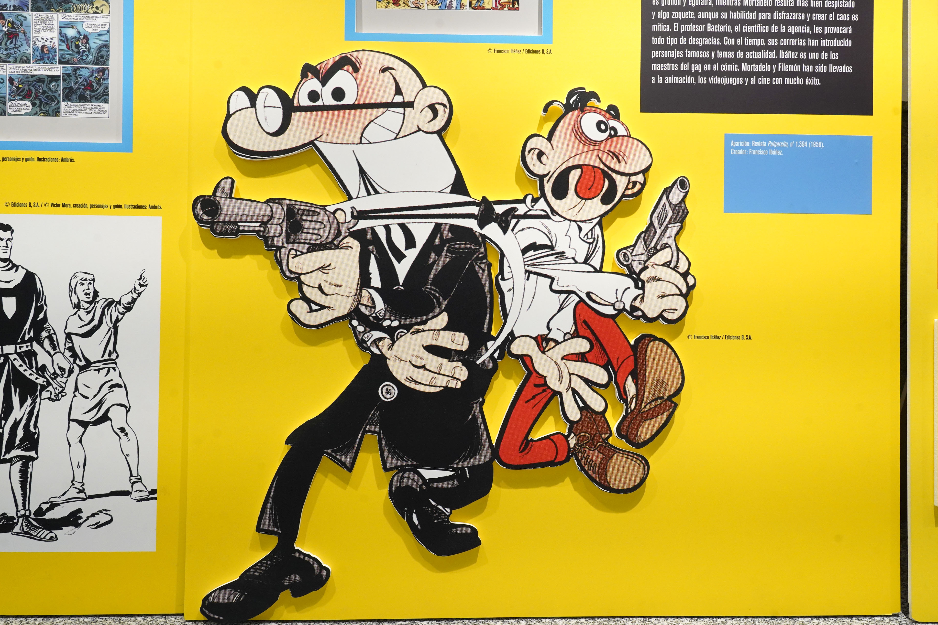 En esta exposición itinerante de la Dirección General del Libro y Fomento de la Lectura, del Ministerio de Cultura y Deporte, incluida en las actividades programadas con motivo de la celebración del Día del Libro por la Concejalía de Cultura de Móstoles, personajes internacionales como Astérix, Blueberry, Modesty Blaise, James Bond, Corto Maltés, Valentina, Lucky Luke, Blake y Mortimer, además de los españoles Capitán Trueno, Mortadelo y Filemón, Torpedo, El Cachorro, Makinavaja, Makoki o Superlopez, protagonizan los paneles informativos de la muestra que también reúne ejemplares de distintos cómics.