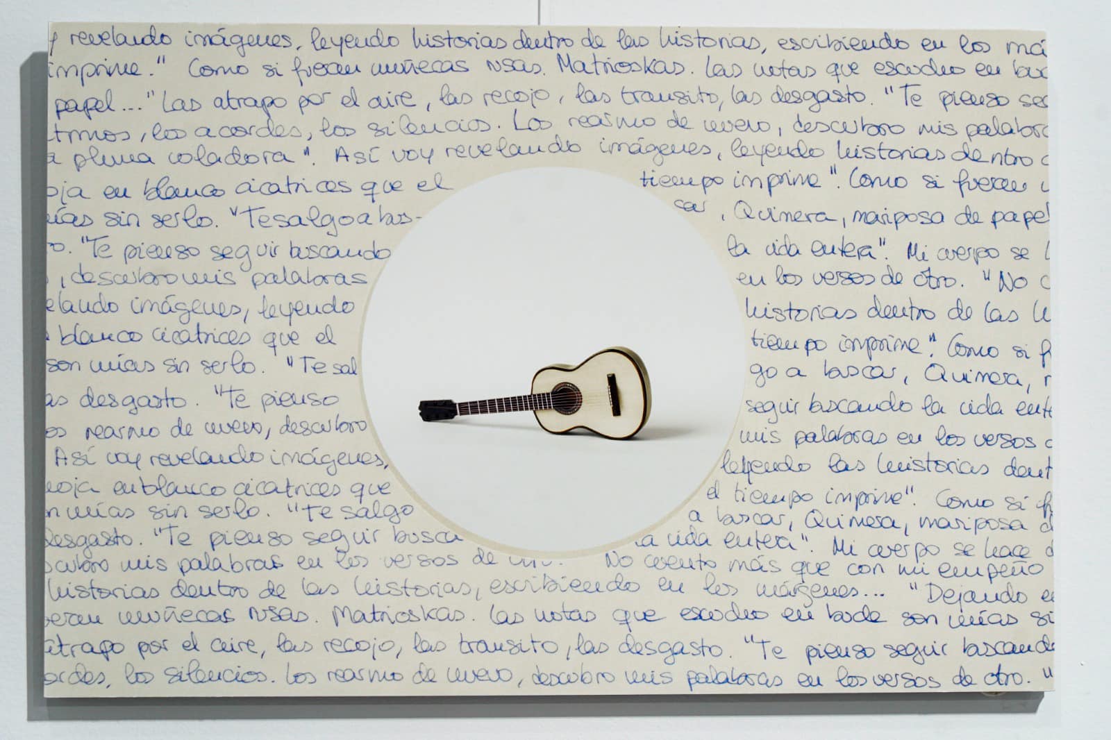 De este modo, "usando como hilo conductor esta obra, presento otras de mis fotos divididas en cinco grupos, asociadas a los diferentes compartimentos según su temática. Mi biografía es el material que ensambla las piezas de papel que construyo y luego fotografío, este acto creativo es un ritual que funciona como catarsis convertida en juego. Formalmente, mi caligrafía, el papel y los pequeños objetos transformados, son el denominador común de mis fotografías.", concluye la artista.