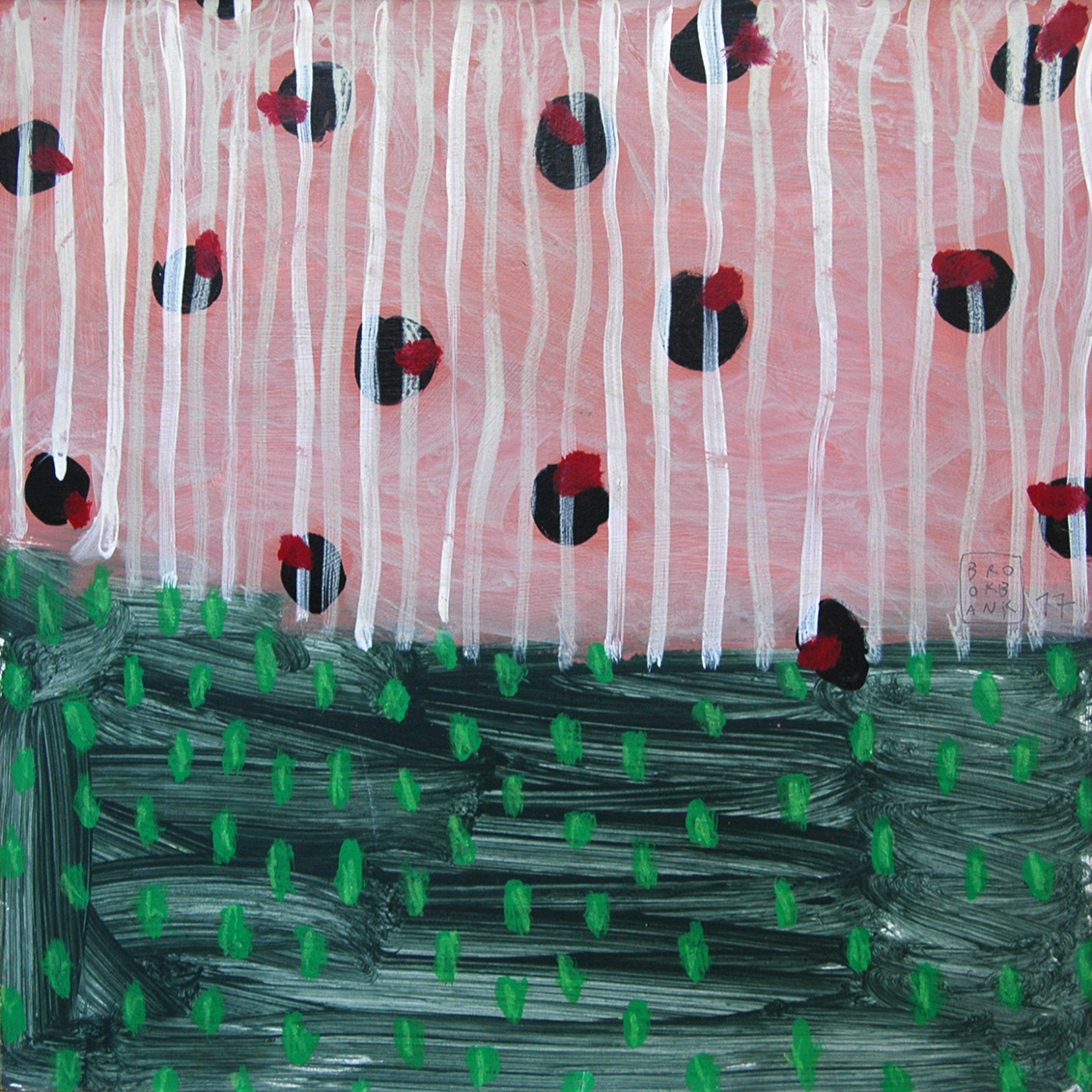 Inspirada en el movimiento expresionista americano, Brookbank se desvía de la pintura como objeto para dar protagonismo a la propia actividad pictórica.