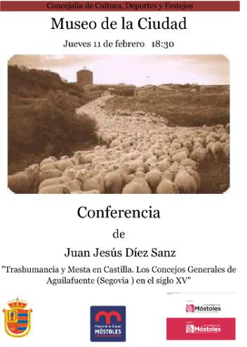 Cartel conferencia La MestaImagen en alta resolución. Este enlace se abrirá mediante lightbox, puede haber un cambio de contextoCartel conferencia La MestaLa Concejalía de Cultura, Deportes y Festejos presenta, el próximo jueves 11 de febrero, a las 18:30 horas, enmarcada en las actividades culturales del Ciclo "Los Jueves, Museo" la conferencia que impartirá Juan Jesús Díez Sanz "Trashumancia y Mesta en Castilla. Los Concejos Generales de Aguilafuente (Segovia ) en el siglo XV".