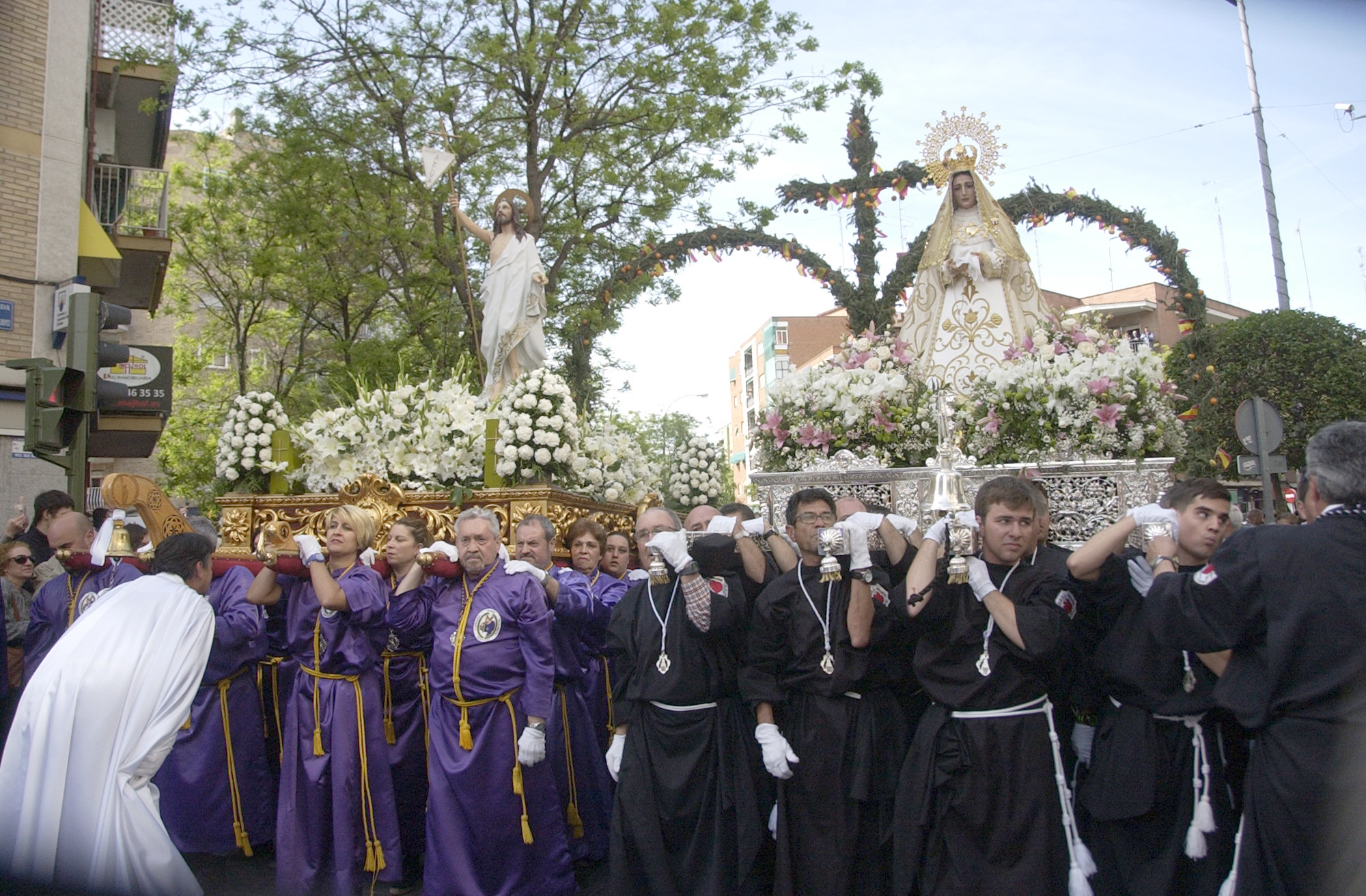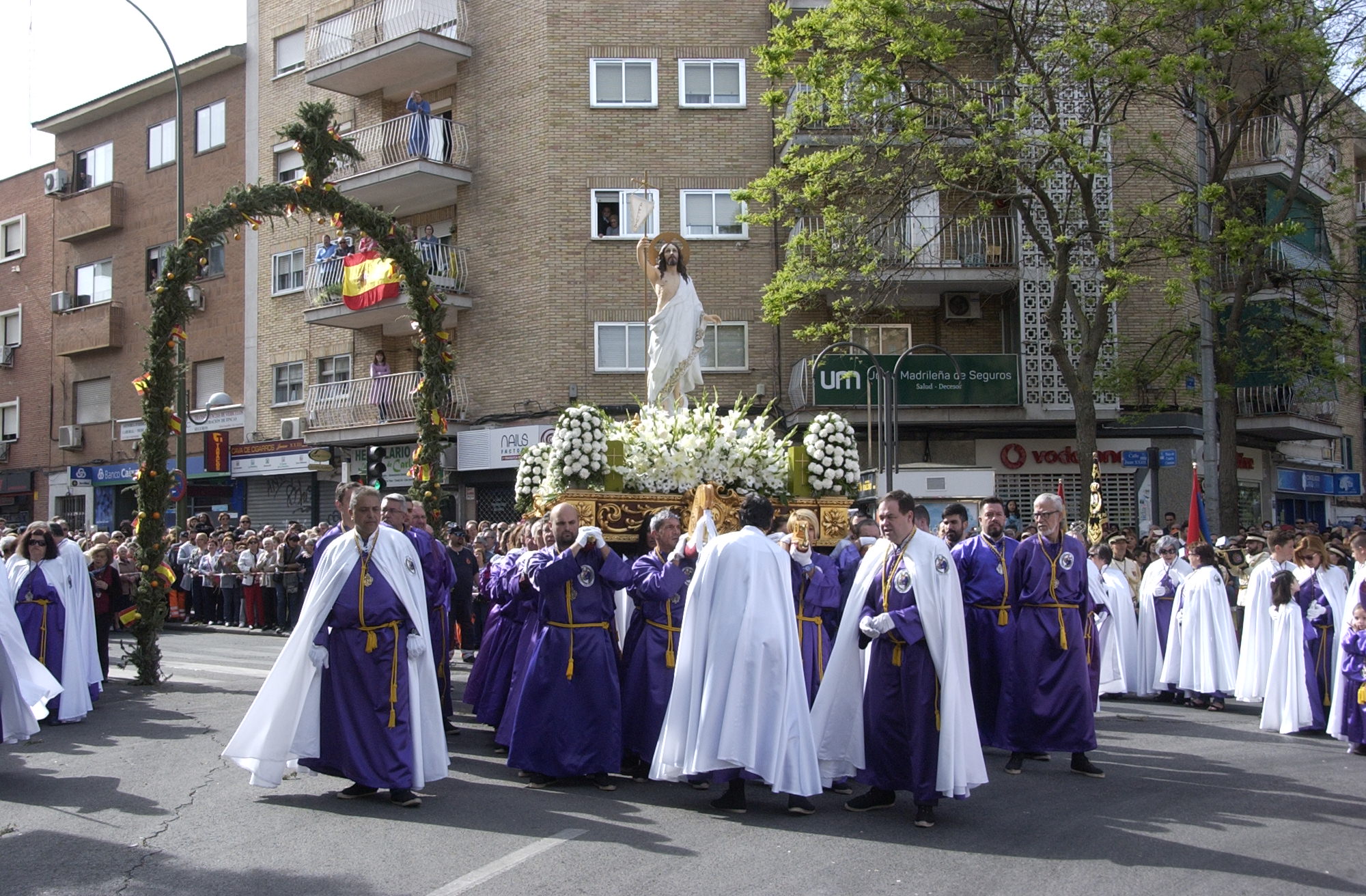 Con esta procesión. que destaca especialmente por el cromatismo de una puesta en escena caracterizada por arcos de romero florido colocados en diversos puntos del recorrido, Móstoles puso el broche final a la Semana Santa del municipio.